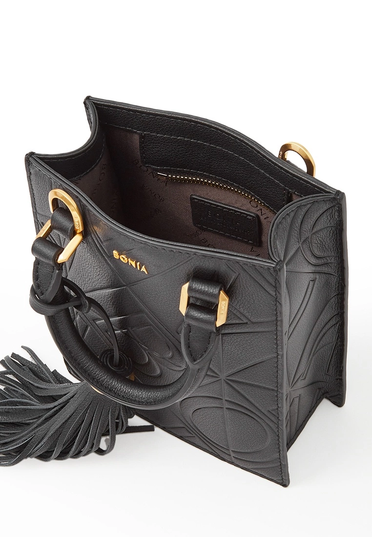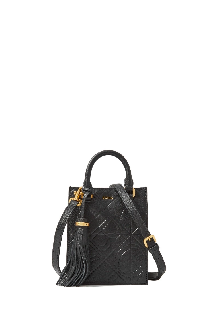 Contemporary and classic, the Tuiles collection features the House’s monogram in embossed leather with a tassel detail. Compact yet spacious, this camera sling bag offers plenty of room for your essentials.Feature Details1 Card Slot1 Bag TagLeather Type: Embossed LeatherMaterial Type: ModerateLogo Type: Metal LogoAccessories Type: GoldLining Type: LogoStrap: Dual Handle, Detachable and Adjustable Shoulder StrapBonia-860372-004-08Measurement14cm (L) × 17cm (H) × 5cm (W)