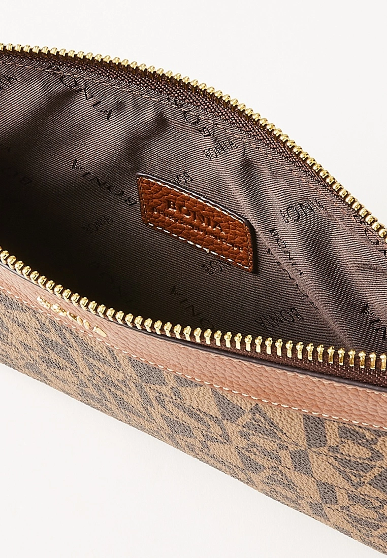 Find space for a small tablet and essentials in the Pisa Monogram Pouch. A looped zipper eases access into the spacious main compartment.Feature Details:3 Card SleevesLeather Type:Nappa EliteMaterial Type: ModerateLogo Type: Metal LogoAccessories Type: GoldLining Type: LogoBonia-860272-801-05Measurement:21.5cm (L) × 16cm (H) × 2cm (W)