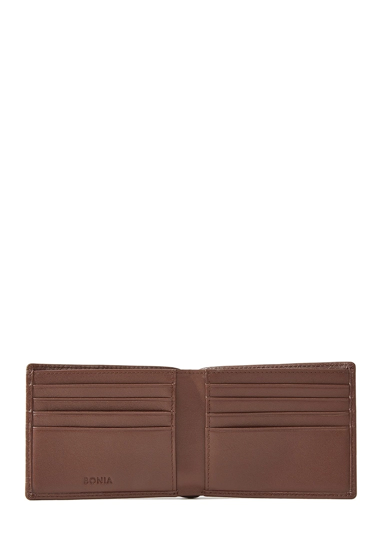 8 Card Sleeves2 Notes CompartmentsMaterial: Calf LeatherMaterial Type: ModerateMaterial Texture: EmbossedLogo: Metal LogoBonia-866034-601-1511 cm (L) x 9 cm (H) x 2.3 cm (W).