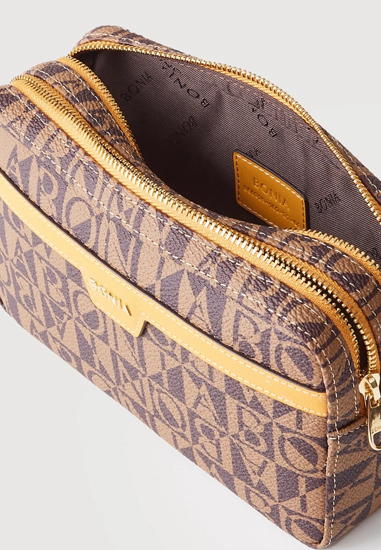 The Mauriuccia pairs the House’s classic monogram with vibrant leather trimmings. A compact sillhoutette with detachable strap, this belted bag series is as versatile as it is stylish. Feature Details:3 Card Slots2 Zip Pockets1 External PocketMaterial: VinylMaterial Type: ModerateLogo: Metal LogoAccessories: GoldLining Type: LogoShoulder Strap: Detachable, AdjustableBonia-860329-102-37Measurement:17.5 cm (L) x 10 cm (H) x 5.5 cm (W)