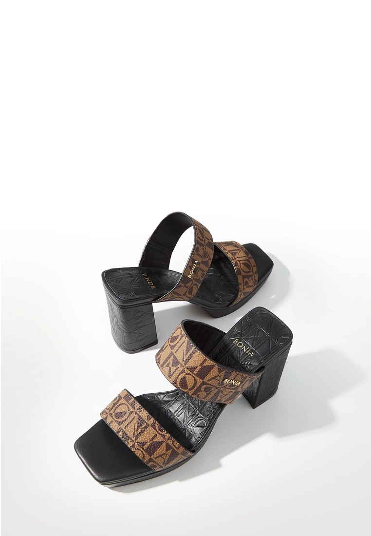 Reach new heights with the Aurelia Platform Heeled Sandals. Crafted from soft leather, with two wide straps and a BONIA monogram at the front, you are sure to be walking comfortably from dusk till dawn.Feature DetailsExterior: Leather, VinylInterior: LeatherOutsole: RubberHeel Height: 3.5″Bonia-08367-6015-15