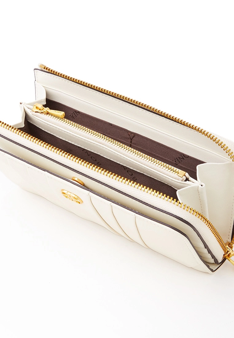 The highlight of our Raya 2022 collection, the Croissant Long Zipper Wallet, takes the form of the French pastry it was named after. Crafted from a smooth buttery lambskin leather in striking colourways and multiple slots for your cash and cards. It also comes with a detachable hook strap for easy carry.Feature Details2 Pockets3 Notes Compartments20 Card Sleeves1 Coin CompartmentLeather Type: Patched Lambskin LeatherMaterial Type: SoftLogo: Metal LogoAccessories Type: Old GoldLining Type: LogoBonia-860378-902-21Measurement19cm (L) × 10cm (H).